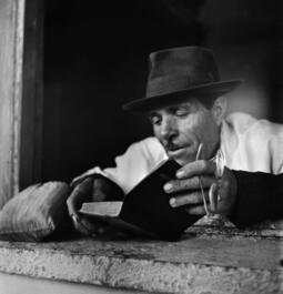 ISRAEL. 1954. Yemenite welder inside a large concrete pipe, part...