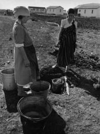 ISRAEL. 1951. Water is scarce and has to be carried from a neighboring...