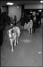 USA. New York City. 2003. Russian wolfhound (borzoi) walking...