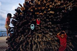 KENYA. Lamu. 1984. Lamu town child with mangrove poles.