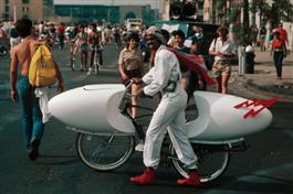 USA. New York City. 1983. Movie extras taking time off during...