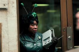 USA. New York City. 1983. A woman listens to the radio during...