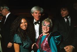USA. New York City. 1981. Andy WARHOL with groupies in Manhattan's...