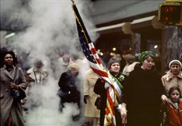 USA. New York City 1983. Crowd on St. Patricks Day during parade...
