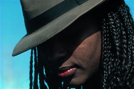 USA. New York City. 1983. Young woman with fedora in Washington...