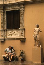 USA. New York City. 1983. Lovers in the Spanish court yard of...