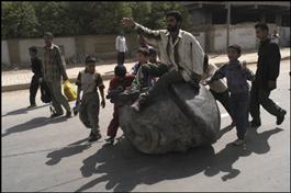 IRAQ. Irbil, Iraqi Kurdistan. 04/09/03. Men, women and boys cheering...