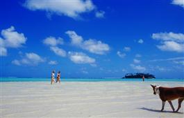 THE COOK ISLANDS. Rarotonga. A dog stands about 50 metres out...