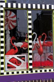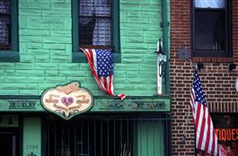 USA. Maryland. Baltimore. Patriotic windows in Fells Point and...