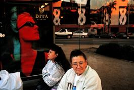 USA. California. Hollywood. 1999. Outside the Guitar Center.