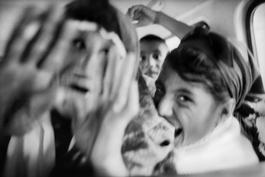 TURKEY. 1990. Bedouin child throwing stones as the bus passes...