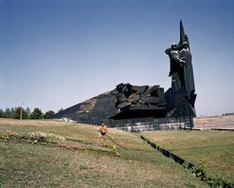 UKRAINE. Donetsk. 2006. A maintenance worker at a public park....