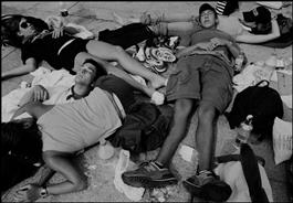 Spain, Pamplona: San Firmin celebration. People sleeping the...