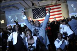 USA. CHICAGO. Presidential Election Night. Victory celebrations....