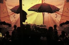 Brownsville. 1989. Central Americal refugees outside shelter....