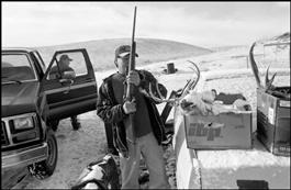 USA. Montana. 1999. Crow Indian Reservation. Deer heads and hunters....