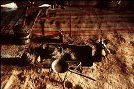 Negev Desert. Bedouin utensils for coffee ceremonies, in their...