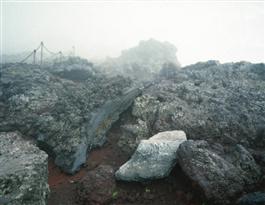 JAPAN. Mount Fuji. Rocks and mist on the way to the summit. 1999....