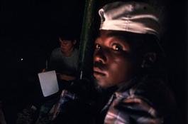 Angola. One of the children living in the sewers uses a lamp...