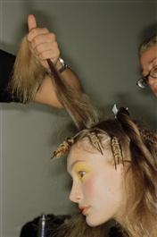 GB. England. London. London fashion week. A model has her hair...