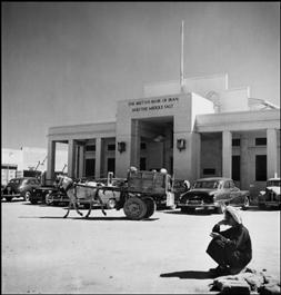 The first bank in Kuwait. Horse cars soon to be replaced by high...