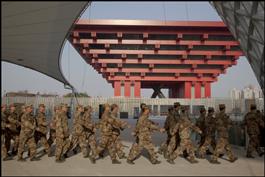 CHINA. Shanghai. Chinese PLA soldiers parade the China Pavilion...