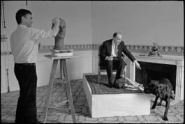 FRANCE. Paris. François MITTERRAND posing for his bust by sculptor...