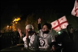 GEORGIA. Tbilisi. November 23, 2003. Celebrations after Shevardnaze...