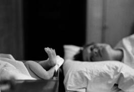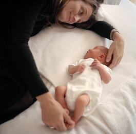 USA. Long Island. A baby's first 5 minutes. The mother looks...