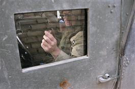 IRAQ. Camp Warhorse, Baquba. January 6, 2005. View from inside...