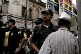 BRAZIL. Sao Paulo. Police patrolling Downtown near the Sao Vito...