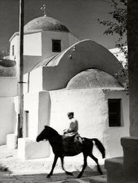 GREECE. Cyclades. Mykonos / Chora. 1937. Donkey rider in Mykonos...