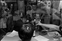 Uzeste.L'Estaminet Café. On the left, the French musician Bernard...