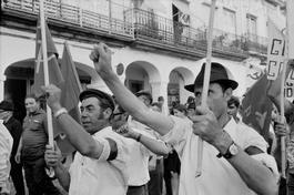 PORTUGAL - Alto Alentejo. Evora. Praça do Giraldo, manifestants...