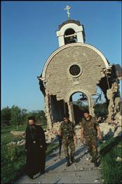KOSOVO. Pec region. July 1999. Father David, protected by Italian...