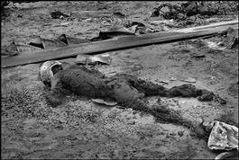 IRAN. Tabas. The charred corpse of an American serviceman lies...