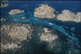 Aerial view of the Natural Marine Reserve of the Lavezzi Islands,...