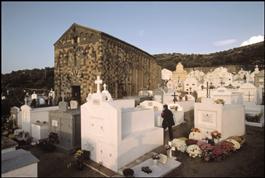 Lumio village. The cemetery with church of St Pietro and Paolo....