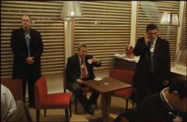 Former Israeli Prime Minister Ehud Barak with bodyguards.