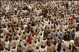 IRAQ. Baghdad. Shi'ites perform their midday prayers in the open,...