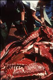 Strait of Gibraltar. Big red tunas taken by the fishermen from...
