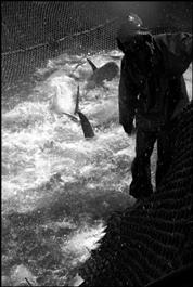 Slowly the "Chamber of death" nets are pulled to the surface...