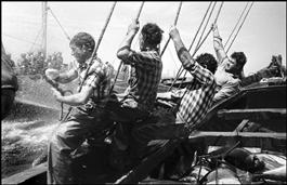 Strait of Gibraltar. Fishermen from the Spanish port of Zakhara...