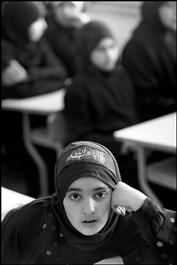 LEBANON. Nabatiye. 2004. A Shia girl attends class at the Imam...
