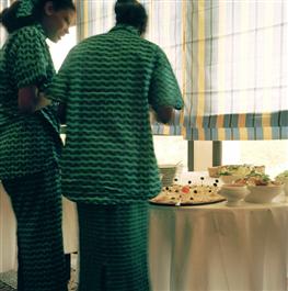 RWANDA. Kigali. Waiters and busers in the Intercontinental Hotel....