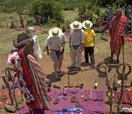 KENYA. Maasai Mara. Japanese tourists visit the Maasai village...