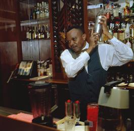 DEMOCRATIC REPUBLIC of CONGO. Kinshasa. Barman making cocktails...