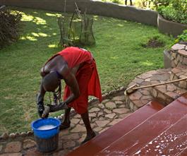 KENYA. Maasai Mara. Serena Mara hotel. Maasai porter. 2005.