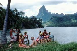 Tahiti. 1960. Picnic, Moorea is seen in background.