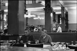 Jean-Paul SARTRE (on the left) in the newspaper' s printing house....